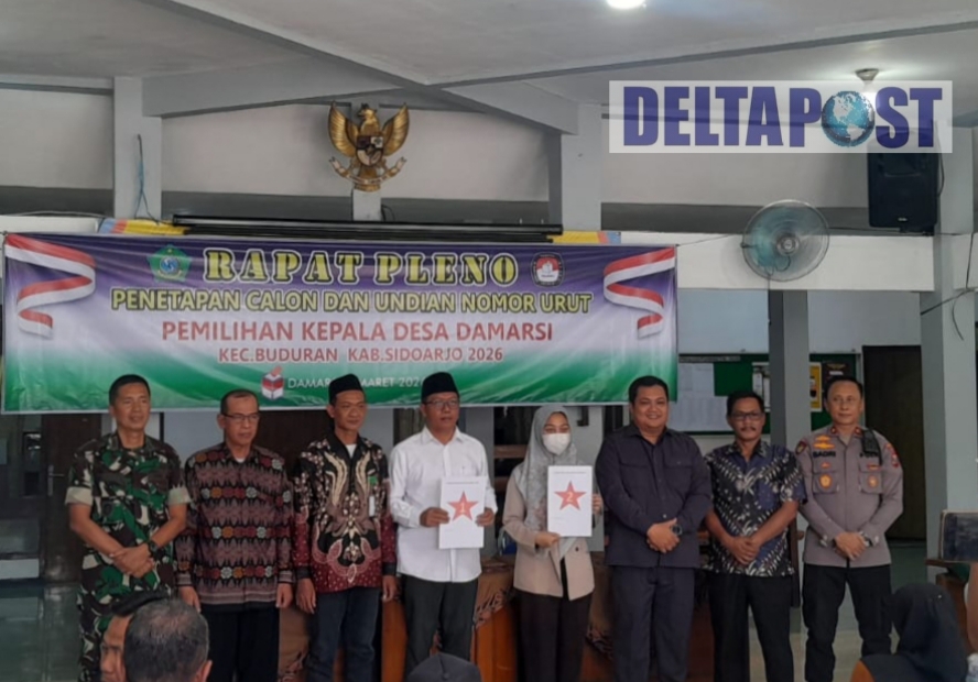 Delta Post, Sidoarjo – Kontestasi politik tingkat desa di Desa Damarsi, Kecamatan Buduran, mulai memasuki babak penentuan. Dua nama resmi ditetapkan sebagai calon kepala desa dalam rapat pleno Panitia Pemilihan Kepala Desa (Pilkades) yang digelar di pendopo balai desa setempat, Minggu (1/3/2026).